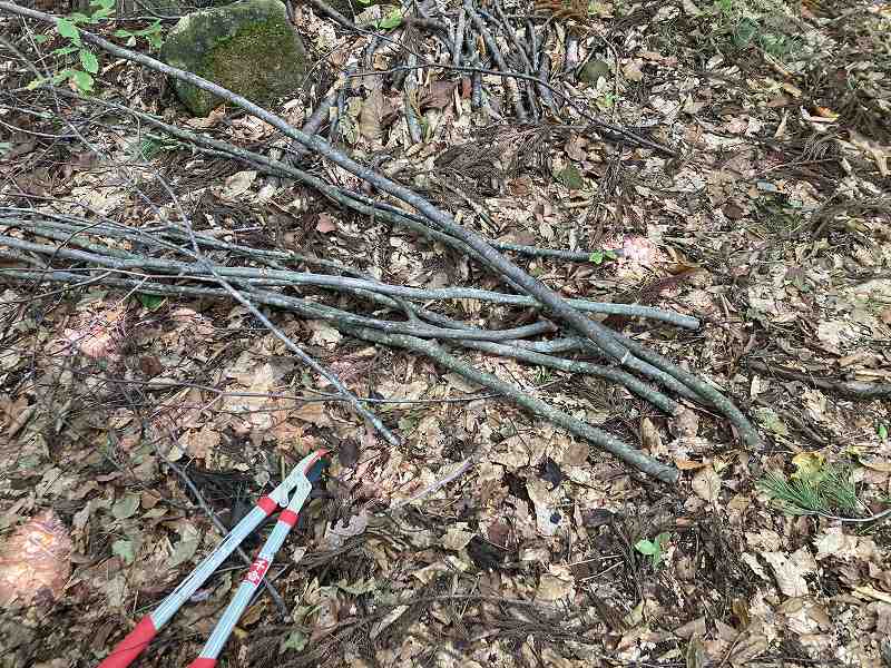 焚火もしたいので、周辺の落ちている細い木を集め