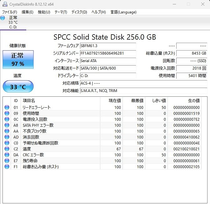 新しいSSDを早急に手配して、システムコピーしなきゃ