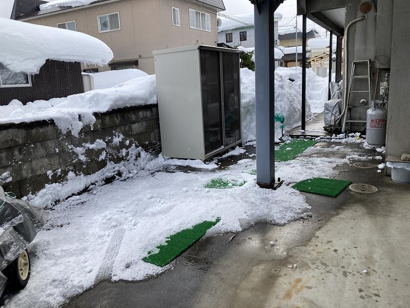 ちょっとたまった敷地内の雪、排雪〜〜〜〜