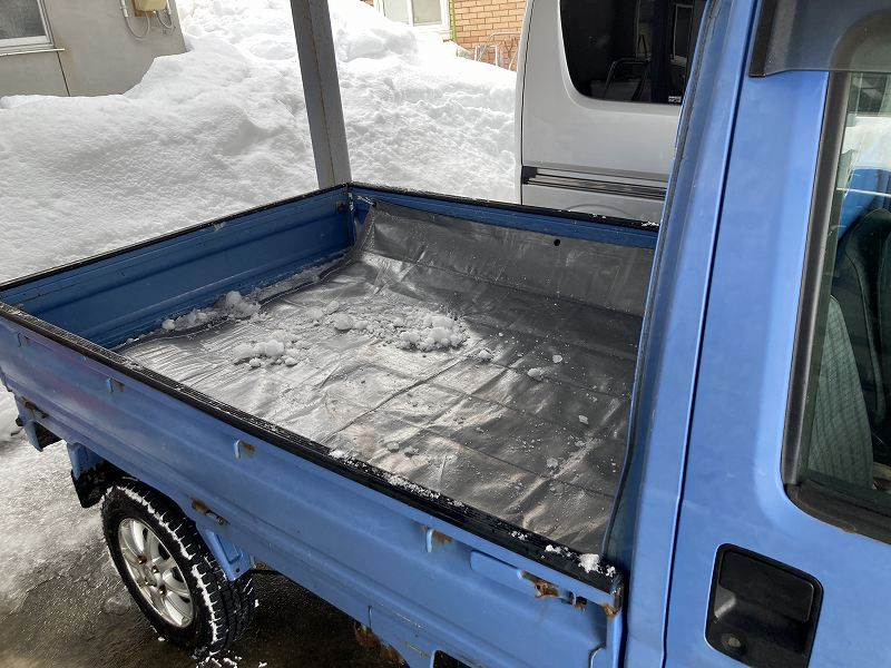 ブルーシート敷いて、一発雪下ろしでやってます