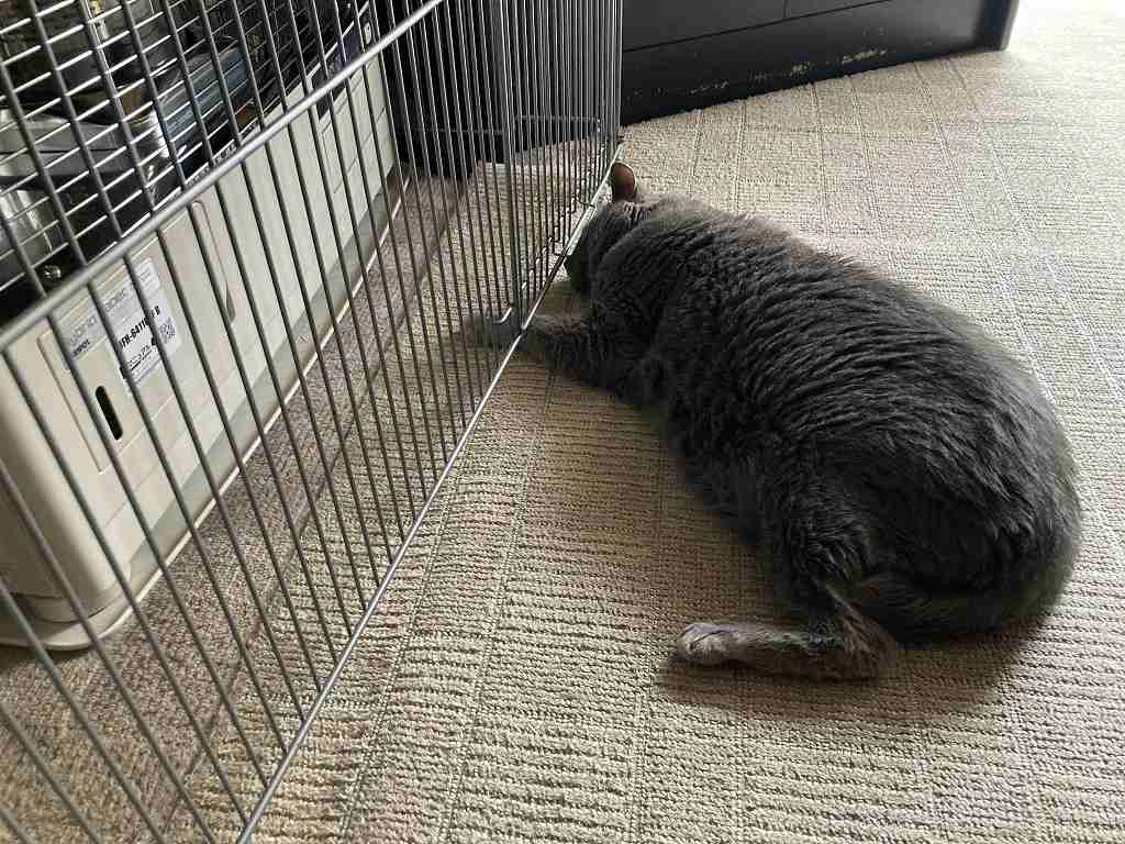 現在、ストーブの前で寝ています